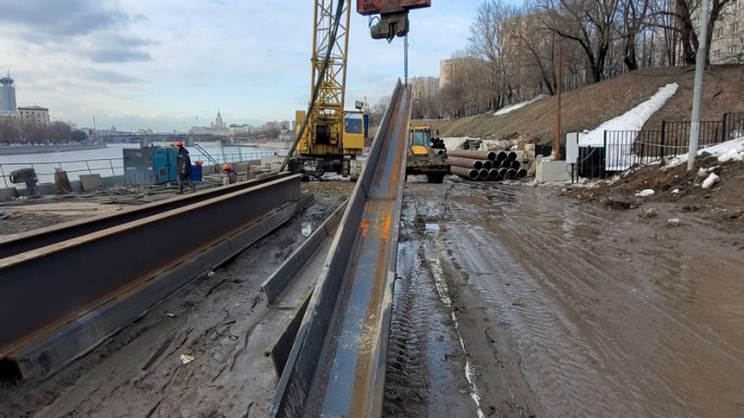 • работы по погружению шпунтов и укреплению стенки;